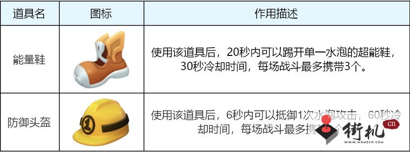 1、能量鞋可以踢开泡泡,踢开泡泡保护自己,把泡泡踢到钉子上造成攻击;