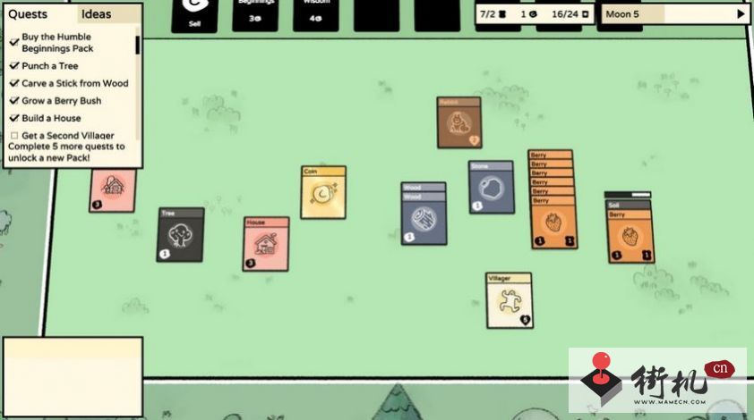 仓库(卡牌容量+14):1石头 + 1铁条 + 1村民