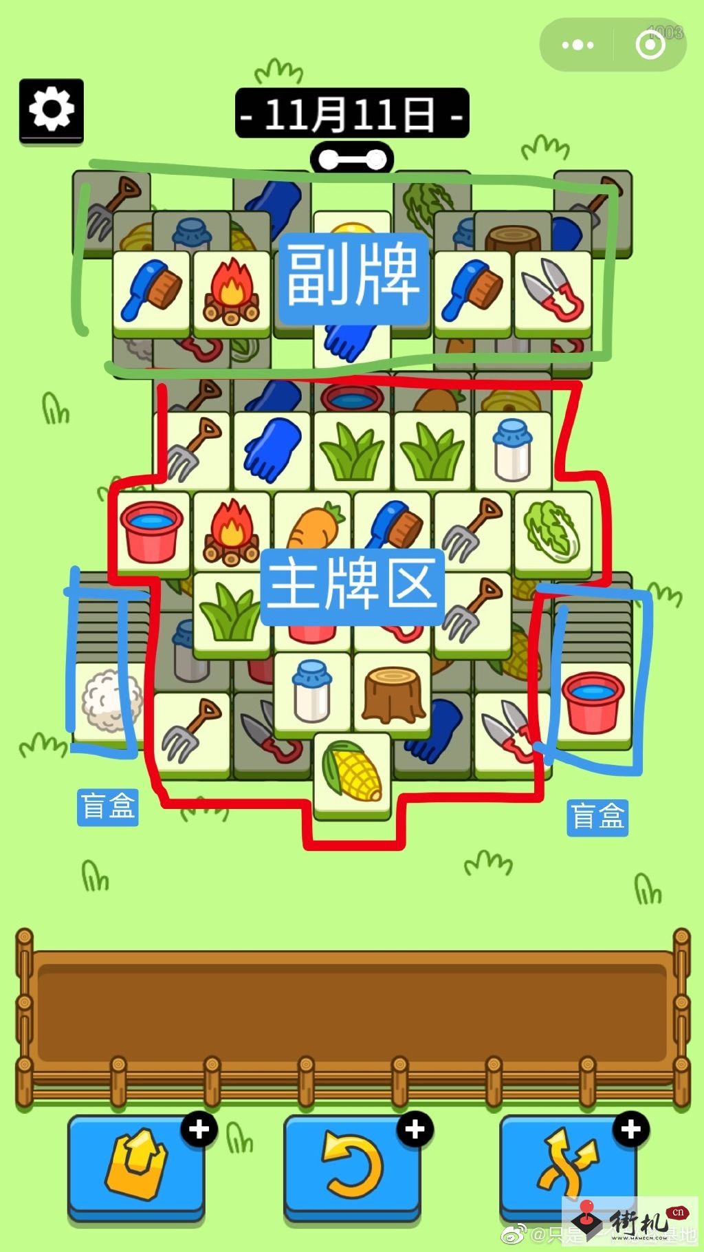 1.羊了个羊11.11难度不大,主要消除的地方在红色区,里面藏了一个长方形大别墅。