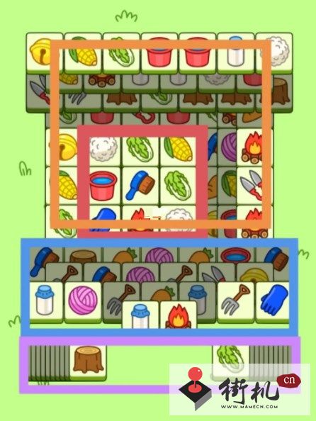 必要时可以用紫色盲盒区来辅助消除红色区,不过还是要以红色区内互相消除为主。