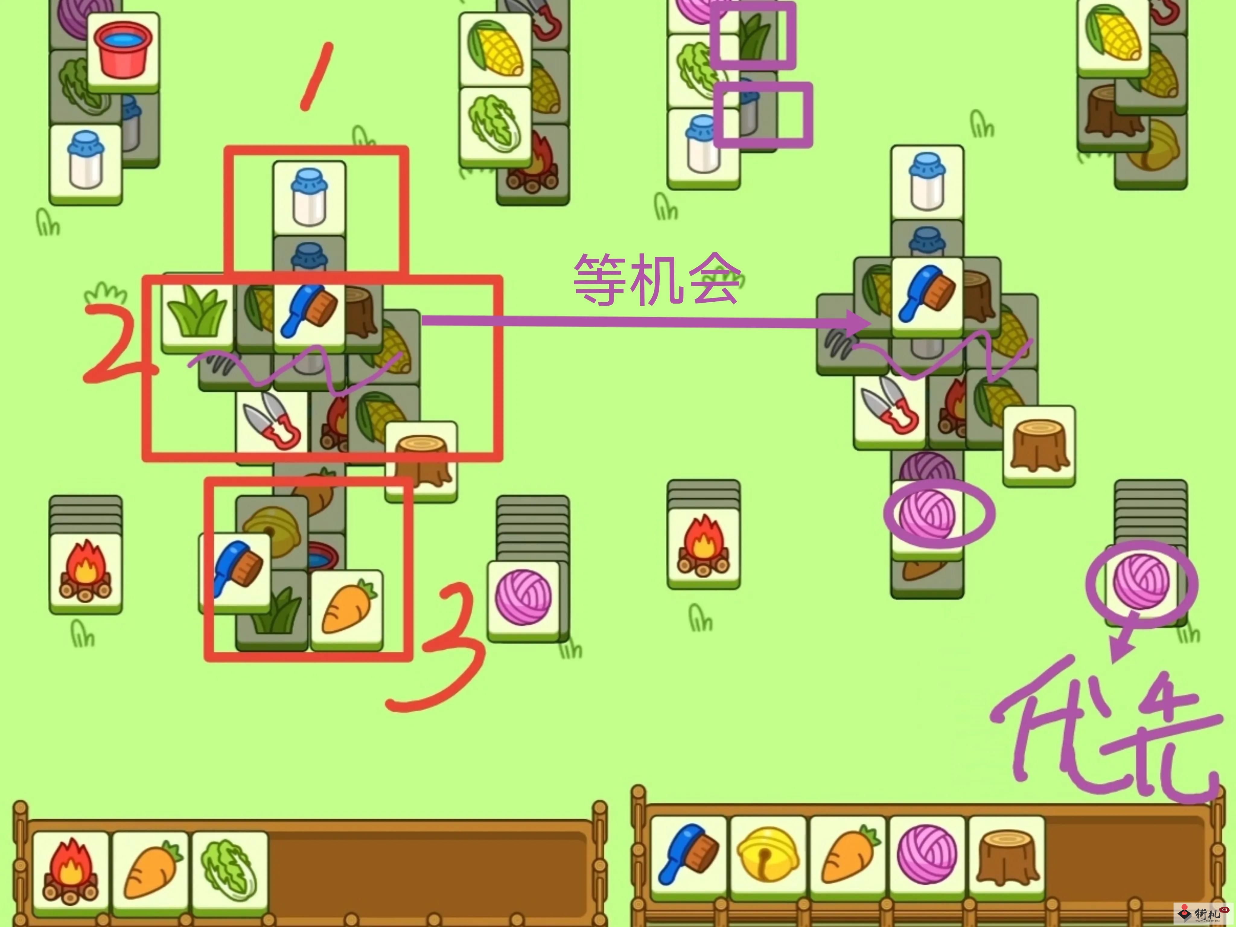 注:卡槽内可以利用急救牌留后路;主攻区牌很顺,重复率很高(一直开一区即可);消除前期,卡槽内卡槽内一旦超过两张余牌,取牌时要算一算。