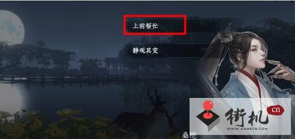 3、后续玩家看到浮浪男子向着白衣女子过去后,这里是可以进行选择上千帮忙。