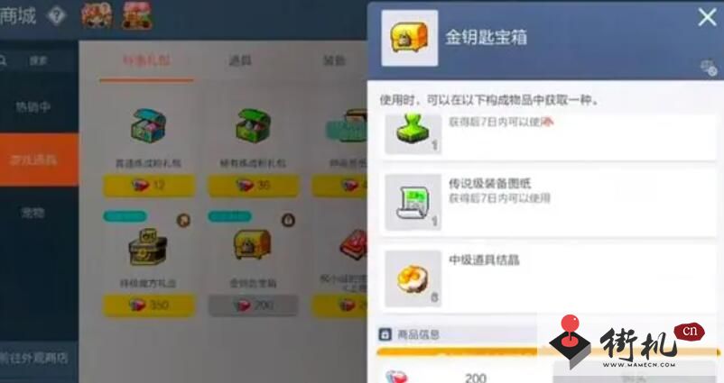 200钻的金钥匙宝箱里是有传说图纸的,但是这个图纸的有效期只有七天哦。
