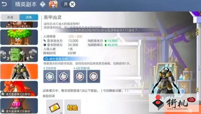 我们选择140级的喷火龙试炼挑战,只要在三分钟内完成就能获得一张图纸。