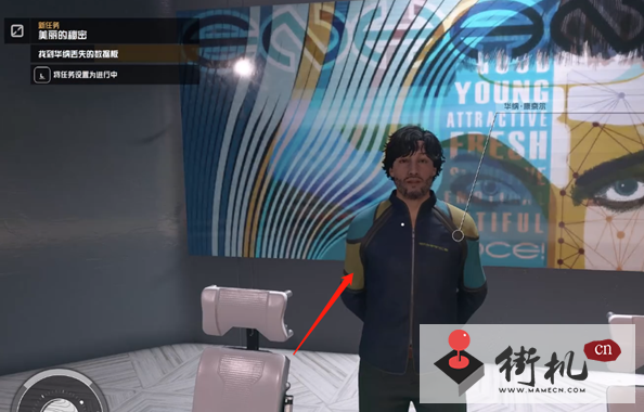 2、然后来到这里与华纳进行对话,对话完毕我们就可以接取美丽的秘密任务。