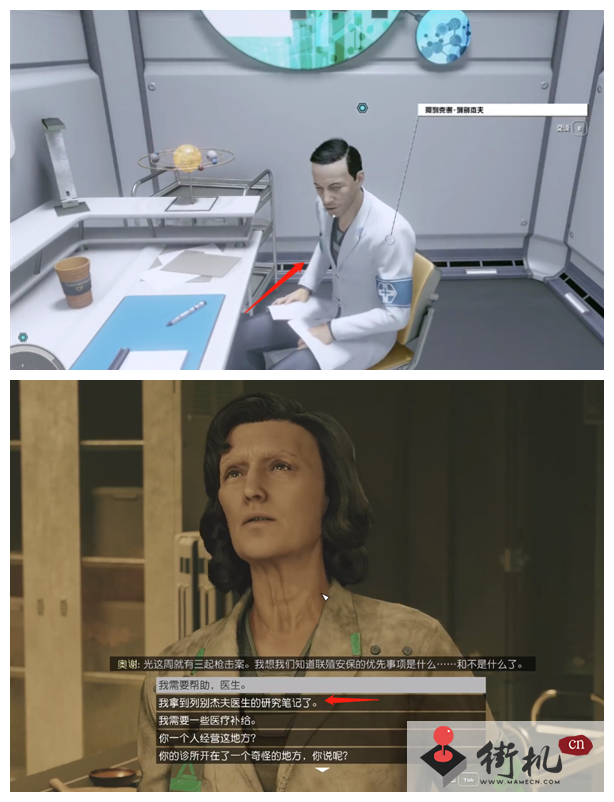 4、根据任务指引,来到这里一个小房间可以看到医生,通过对话可以拿到列别杰夫医生的研究笔记。