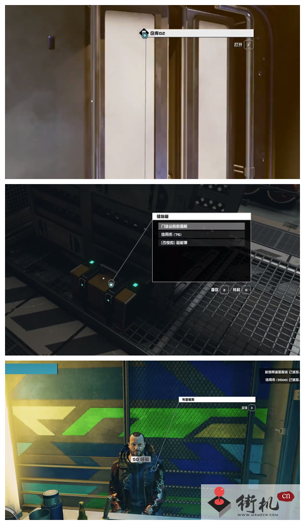3、沿着霓虹城的路跑到霓虹城核心,在核心处右侧有一个通道,进入仓库02,这里是门徒会的据点。