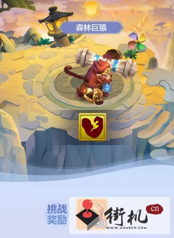 本关上场1个怪,一个森林巨猿。森林巨猿收到的伤害降低90%。本关主怪伤害较高,可上阿宝搭配其他3个高输出物理单秒伙伴,也可上场成周妖皇对敌方附加诅咒印记,对怪物造成反伤效果。