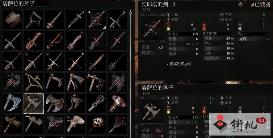 4、塔萨拉的斧子白值加点在物理上,玩家装备使用需求敏捷17、力量20。