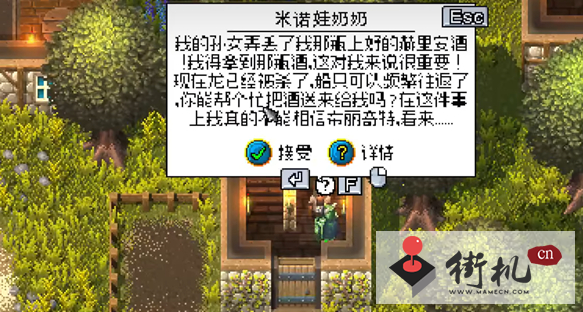 2、米诺娃奶奶的房间就在港口码头的右下角,打开地图也会发现一个带着问号的NPC,这就是我们的目标。