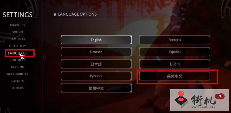 3.进入弹出的选框,找到【LANGUAGE】选项,选择【简体中文】